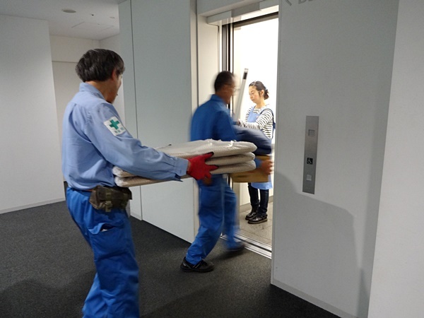 明日11月10日から『松竹大谷図書館所蔵 3D浮世絵 歌舞伎組上燈籠の世界』展が始まりますが、今週6日に、松竹大谷図書館から藤澤浮世絵館へ歌舞伎組上燈籠絵15作品の搬出作業が行われました。今回の展覧会では、原画である組上燈籠絵と、その複製を切り出して組上げた立体形を並べて展示するため、すでに複製のためのデータは藤澤浮世絵館へ貸出されていますが、いよいよオリジナルの組上燈籠絵が出発です。