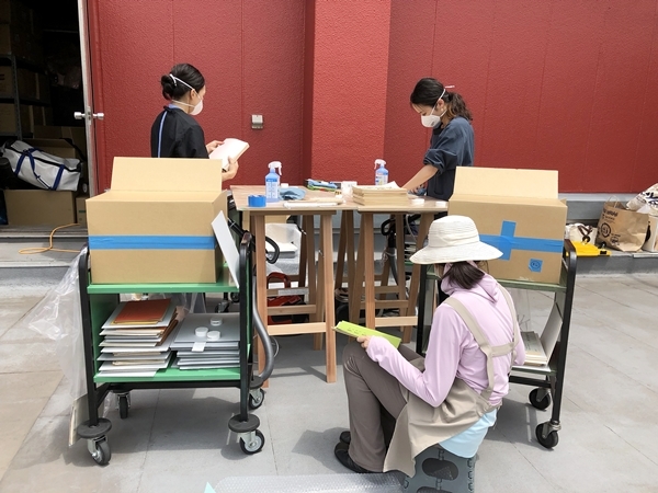 作業は、株式会社資料保存器材のスタッフの方2名と、当館スタッフ2名の合計4名で行いました。