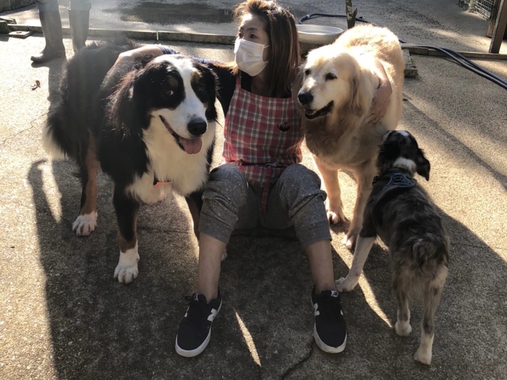 手作り感満載な犬舎&猫舎なのに掃除が行き届いていてびっくり。面会中にもおしっこしたら直ぐに水で流しうんちすれば直ぐに片付けていました。またワンコ達の笑顔の多さと躾の徹底さにも愛情を感じました。そしてご縁あって今はおっぽの会さんより3頭を引き継ぎ家族として暮らしています。アニーとスカイとマリンです。