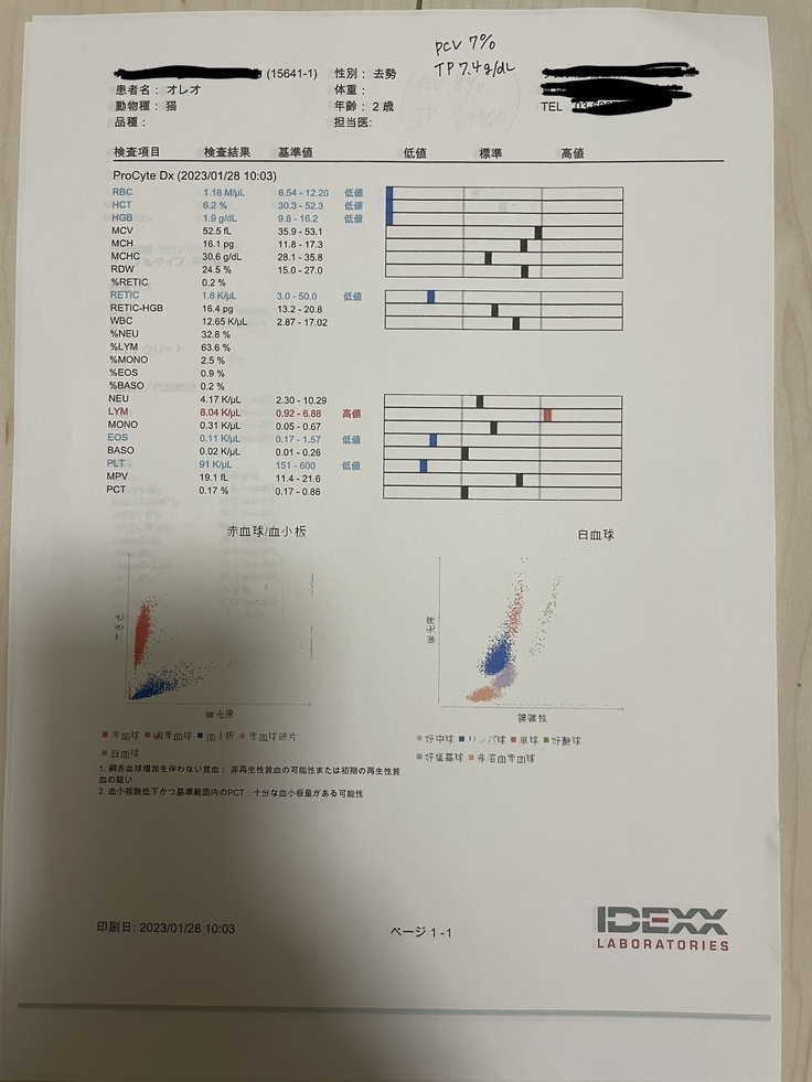pvc7%が貧血の値を示しております。この数値は命に関わるくらいの重度の貧血です。