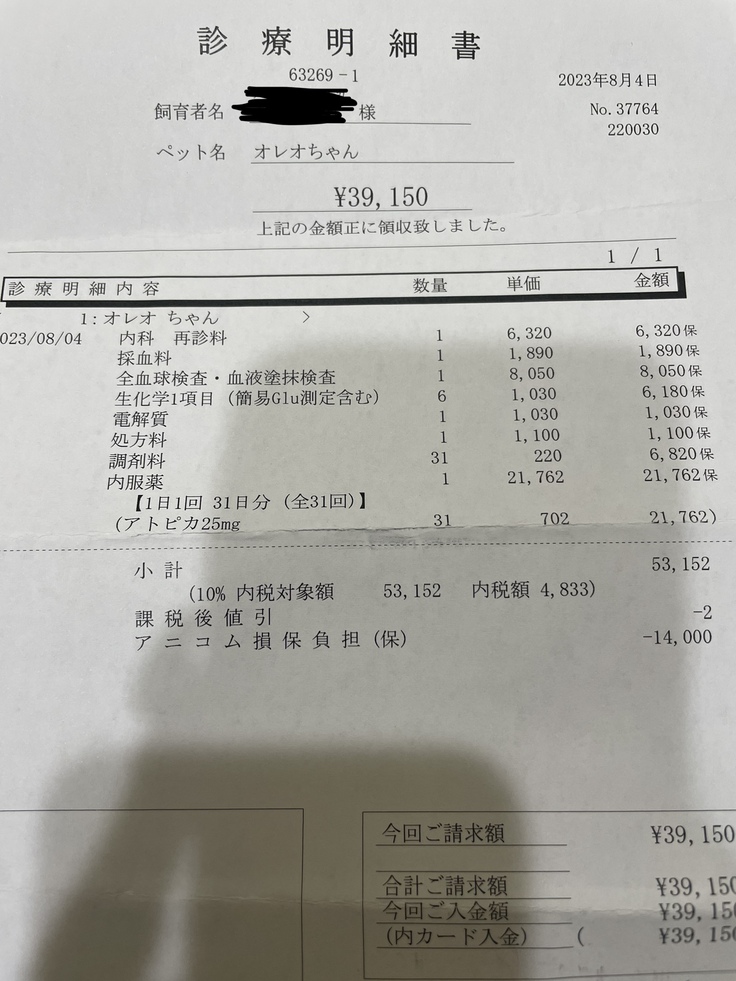 8月は53.152 円-保険料14.000円