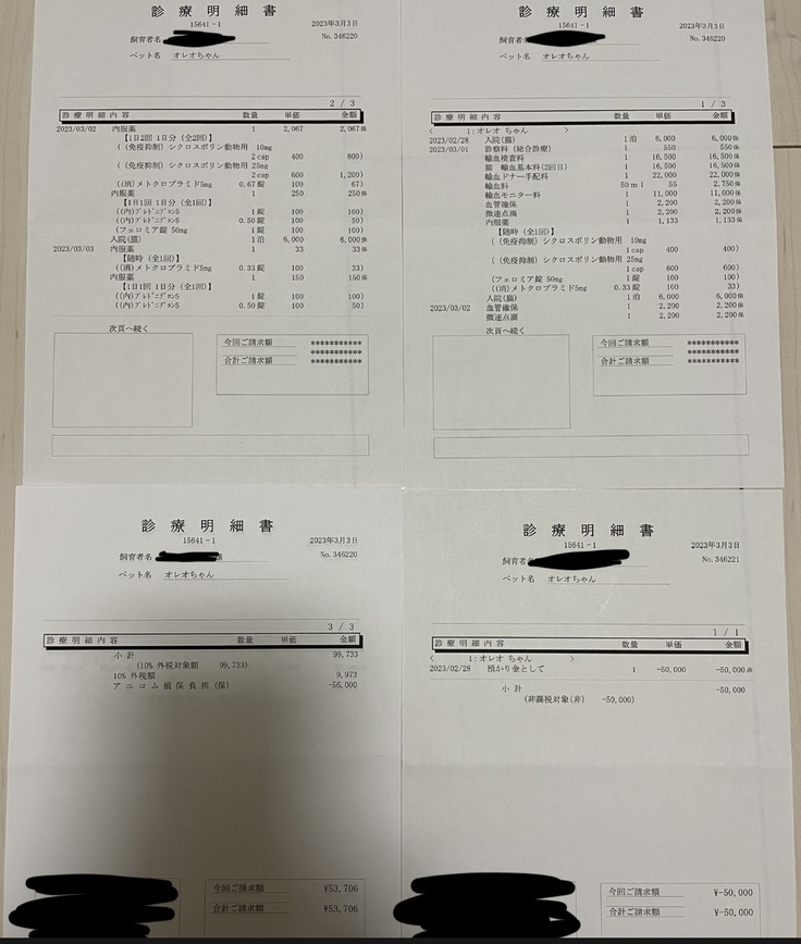 3月3日に輸血をお願いしていた病院から骨髄検査のために総合病に転院した為同じ日付で2枚あります。