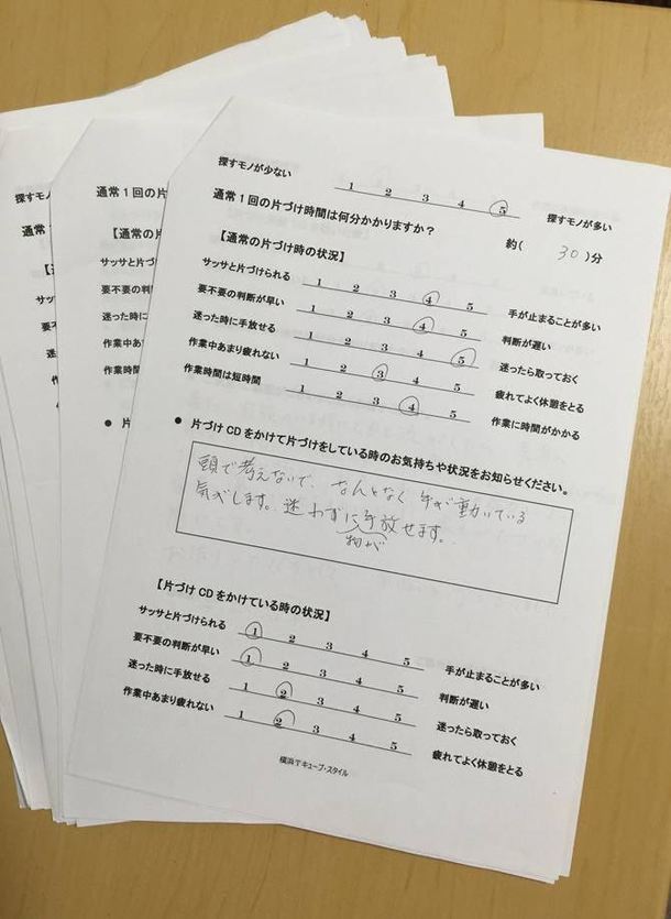 CDを聞いて遊園地に居るような楽しい気持ちになり、自然と手が動いてスムーズに片づけられたように思います。頭の中がスッキリして書類の分別がいつもより早くでき、身軽に動ける気がします。ありがとうございました。