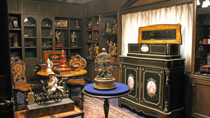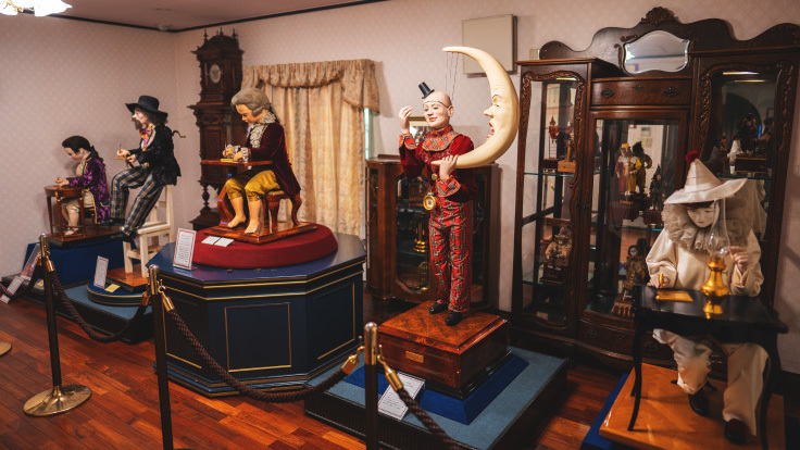 当館は、開館後まもなく、世界最高峰と称されるオルゴールメーカー【スイス リュージュ社】の創業家ギド・リュージュ氏が個人宅内で保管し、来客のお客様にだけ特別に公開していたコレクション約800点を譲り受け、その後、様々なオルゴール・自動演奏楽器・オートマタ(自動人形)・蓄音機などを世界各国より収集し、日本の皆様にご紹介してまいりました。