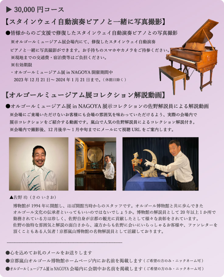 【オルゴールミュージアム展 in NAGOYA】 会場内にお名前掲載コース