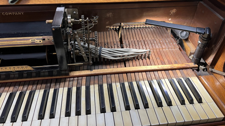 先月、工房に到着した自動演奏ピアノは、早速パーツ毎に分解が行われました。