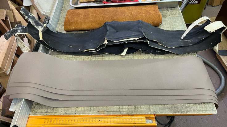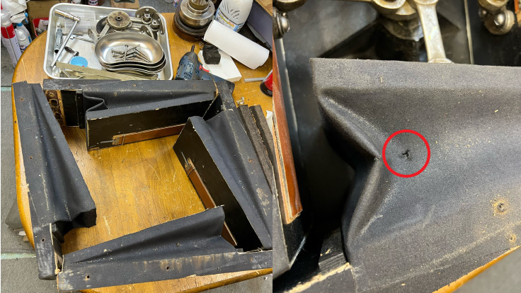 穴が開いていたふいごの革はもちろん、すべてのフイゴの革を外して新しい革に張り替えます。