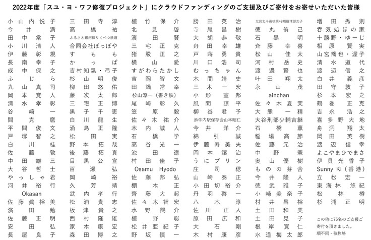 ・現地に設置する支援者銘板(プラ板)に名前掲載<希望制>