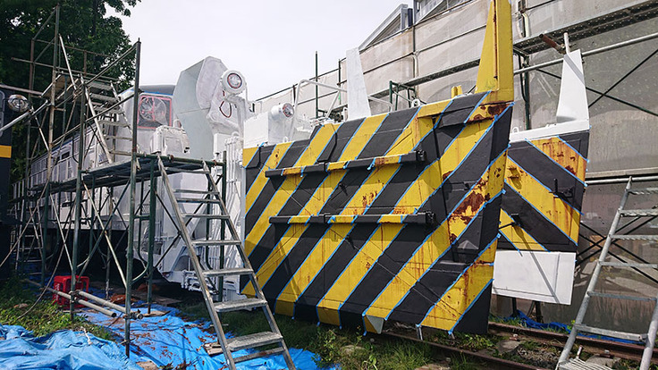 DD14も前面錆止め塗装を完了!全身真っ白です。これはこれで貴重な姿です。