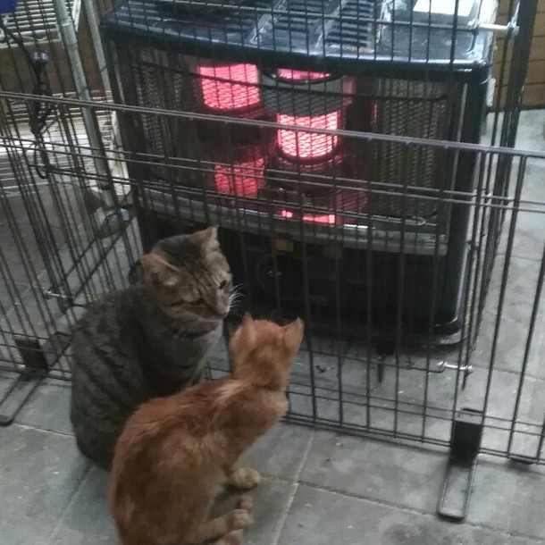 エアコンは4台に節約をして、石油ストーブの周りで夜の抱っこタイムとなります。