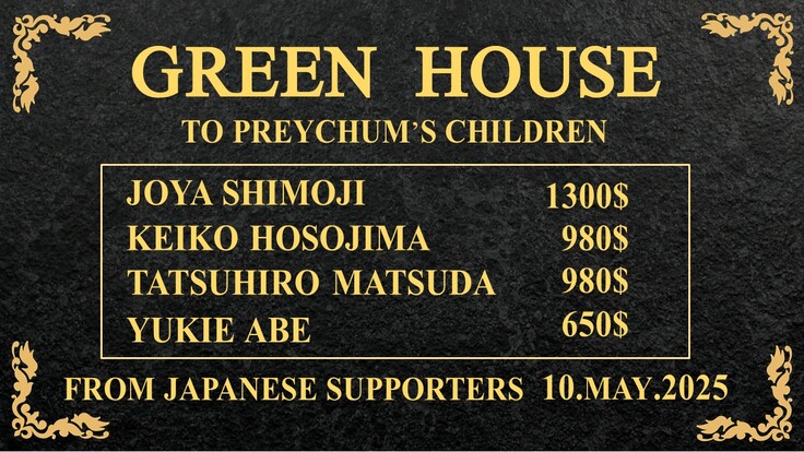 この度は、本プロジェクト『カンボジアの孤児院にビニルハウスを寄贈したい』にご支援いただきまして本当にありがとうございました。