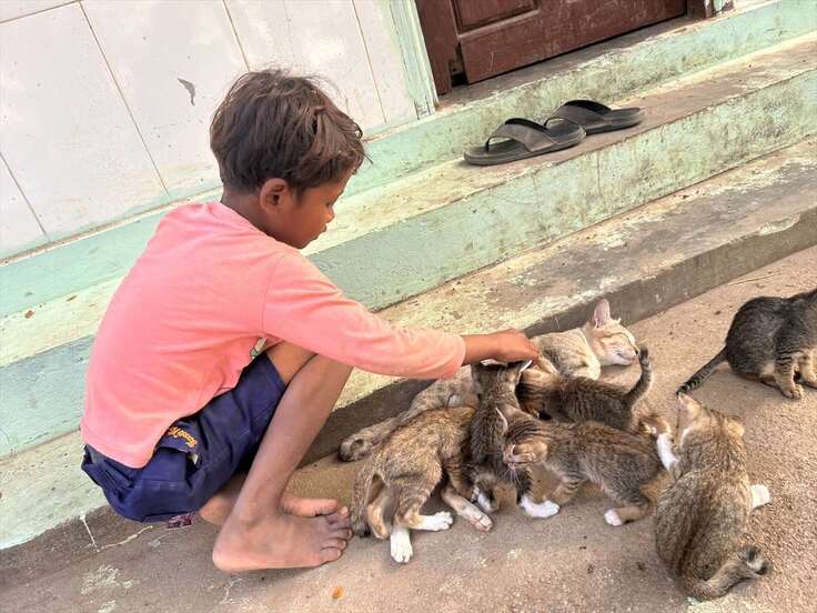 続いては、生まれたばかりの子猫をかわいがる子ども。