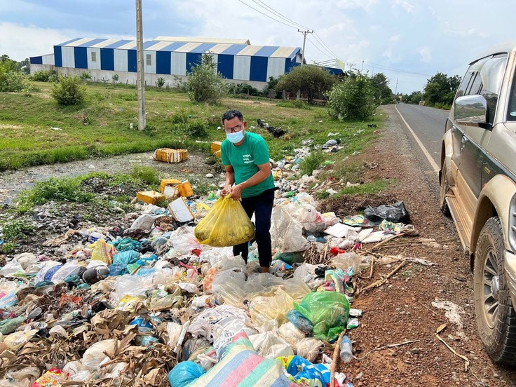 今日も理事長のサラットさんをはじめ、職員と子どもたちが、KrangChekの町の清掃活動に行きました。