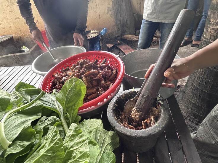 これは、カンボジアンテーストで、エビのすり身のソースです。(結構いけます。)