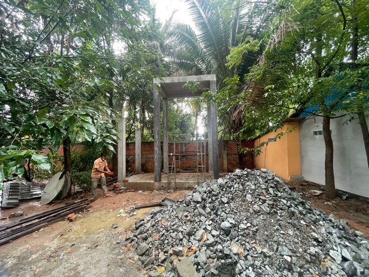 5,000Lのタンクを4mの高さに持ち上げ、院内の水道の基幹設備を作る予定です。
