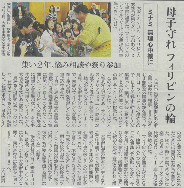 大阪のミナミにある大阪市立南小学校で、フィリピン母子心中が起こりました。母親に頼れる人がいなかったという事を知り、私はフィリピン人女性のコミュニティーを作りました。