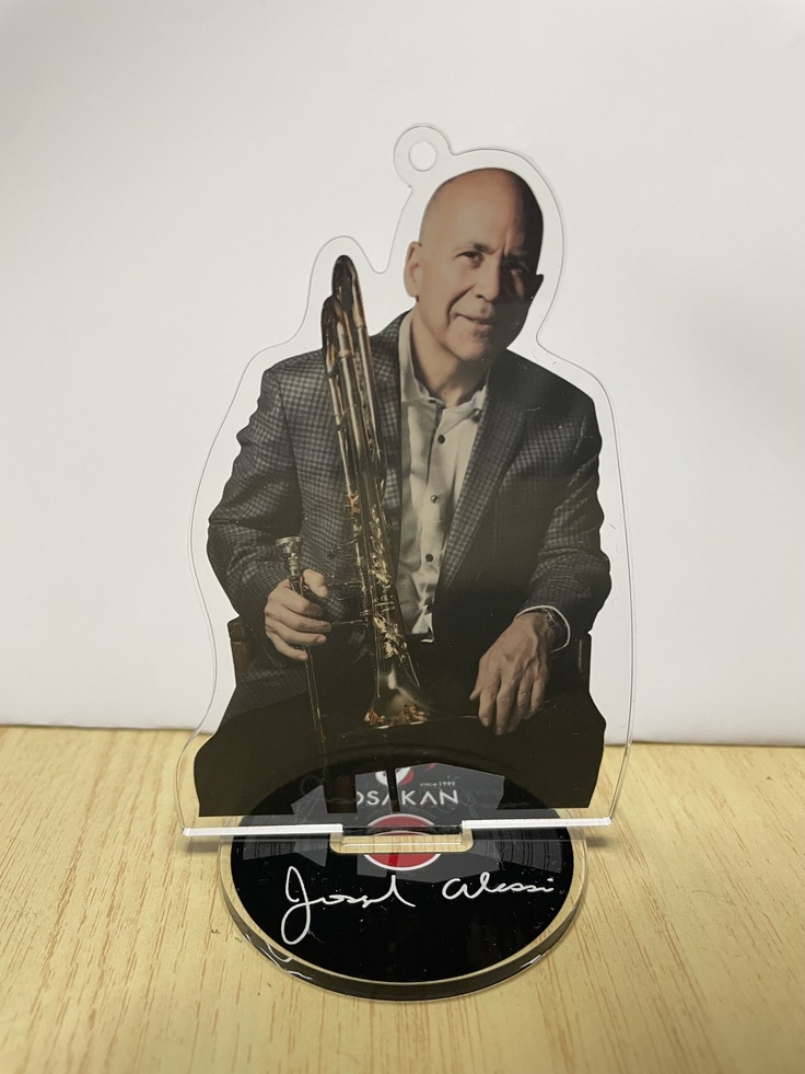また、台座部分はレコードを模したデザインとなっており、アレッシ氏のサインロゴとオオサカンロゴが入っております。