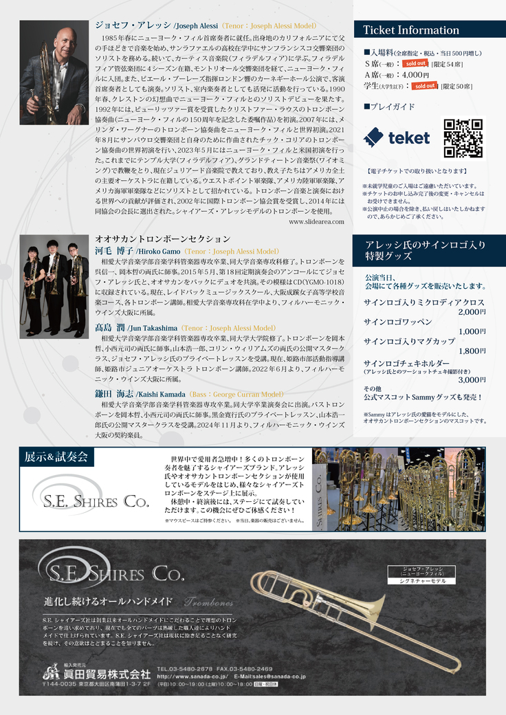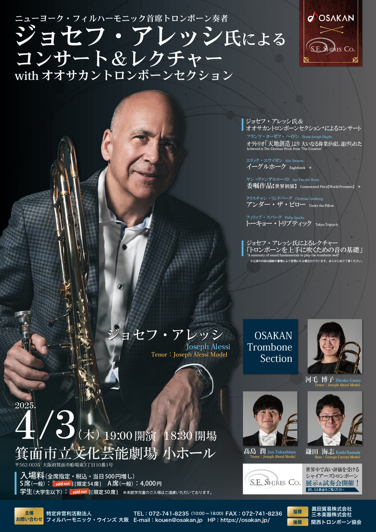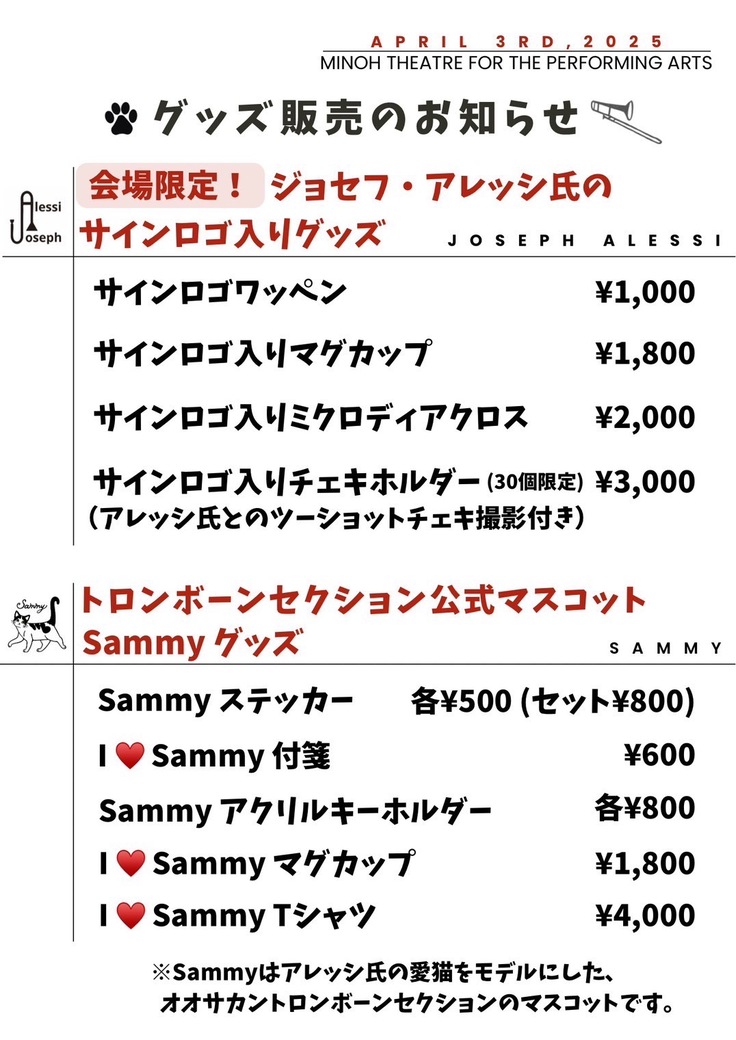 また、4月3日開催の「ジョセフ・アレッシ氏によるコンサート&レクチャー with オオサカントロンボーンセクション」の会場にて、グッズ販売を行うこととなりました。