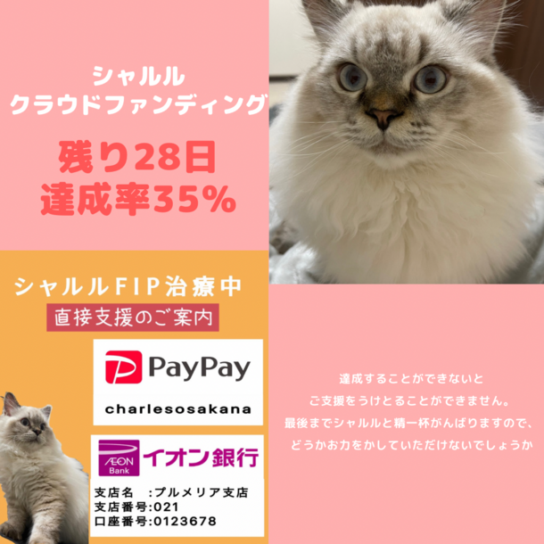 最後まで投薬もクラウドファンディングも精一杯頑張りますので、どうかお力添えいただけないでしょうか。