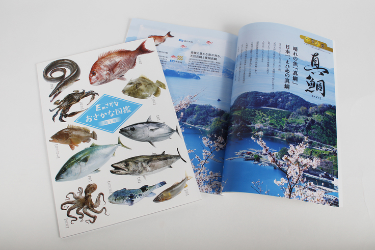 A4オールカラー100ページ 魚種12種の紹介 (クロマグロ、真珠、ホタルジャコ、カタクチイワシ、シマアジ、アナゴ、ケンサキイカ、マアジ、マサバ、甘鯛、ヒラメ、スマ)