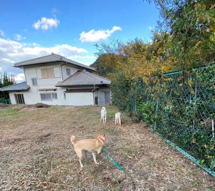 ・庭をドッグランへ変更:植木の暫定、ドッグラン部分の整地は済み。フェンスの設置ができなかった(見積もり約300万円程度)。理由は、物件変更で敷地面積が広くなったことと資材の価格高騰のため。