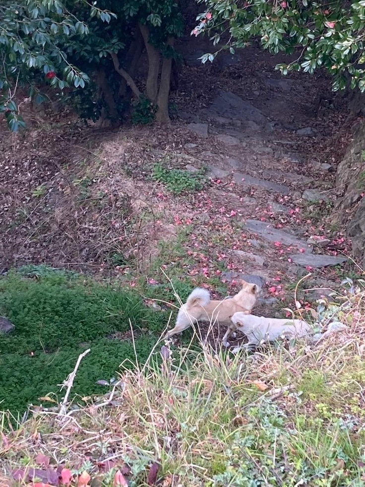 和歌山城の敷地内にもたくさんの野犬たちがいて、垂直に近いお城の石垣を登り降りすることができたり、子犬が石垣の上から降ってきたという話しもあるほどの環境で生きています。