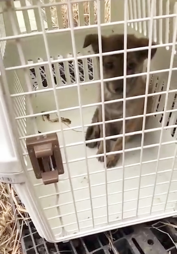 兄弟姉妹たちが先に無事に保護されていなくなっていく中、ガリガリの小さな体のこの子犬が、自分の身を守ろうと一生懸命、