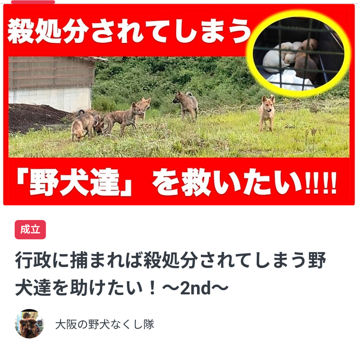 全国の野犬の殺処分をゼロにする、そして野犬をゼロにすることを目指しています。