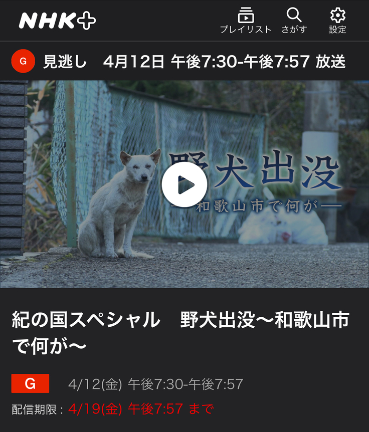 NHK和歌山のTV見逃し配信中です❗️野犬問題を動かすために、番組に皆さんの声を届けてください❗️