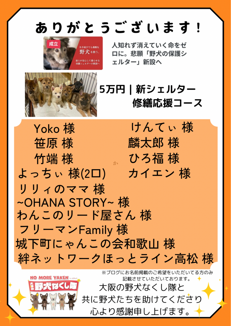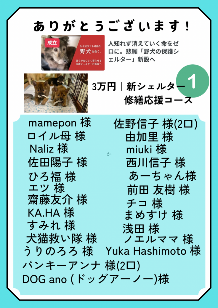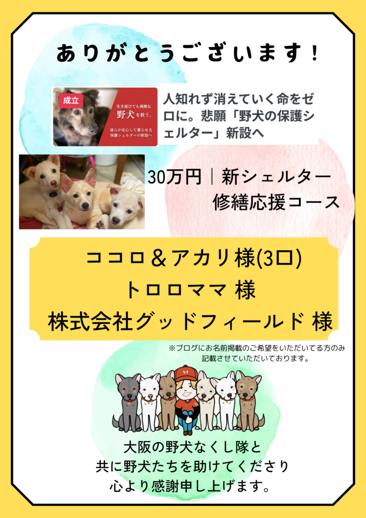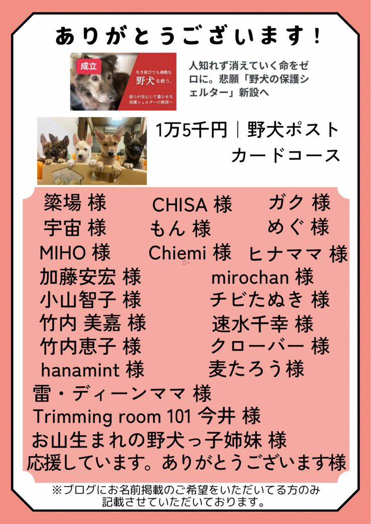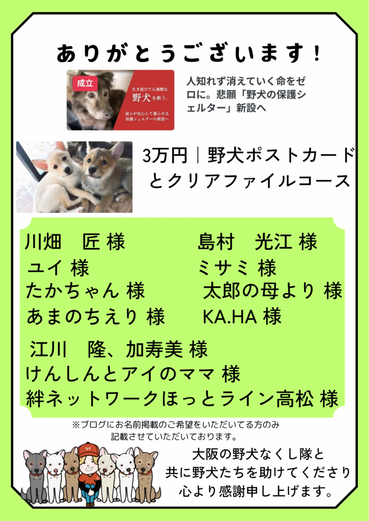 これだけもたくさんの方が、野犬たちのためにと行動に移してくださったこと、感謝してもしきれません‼︎
