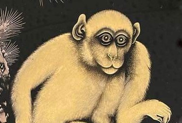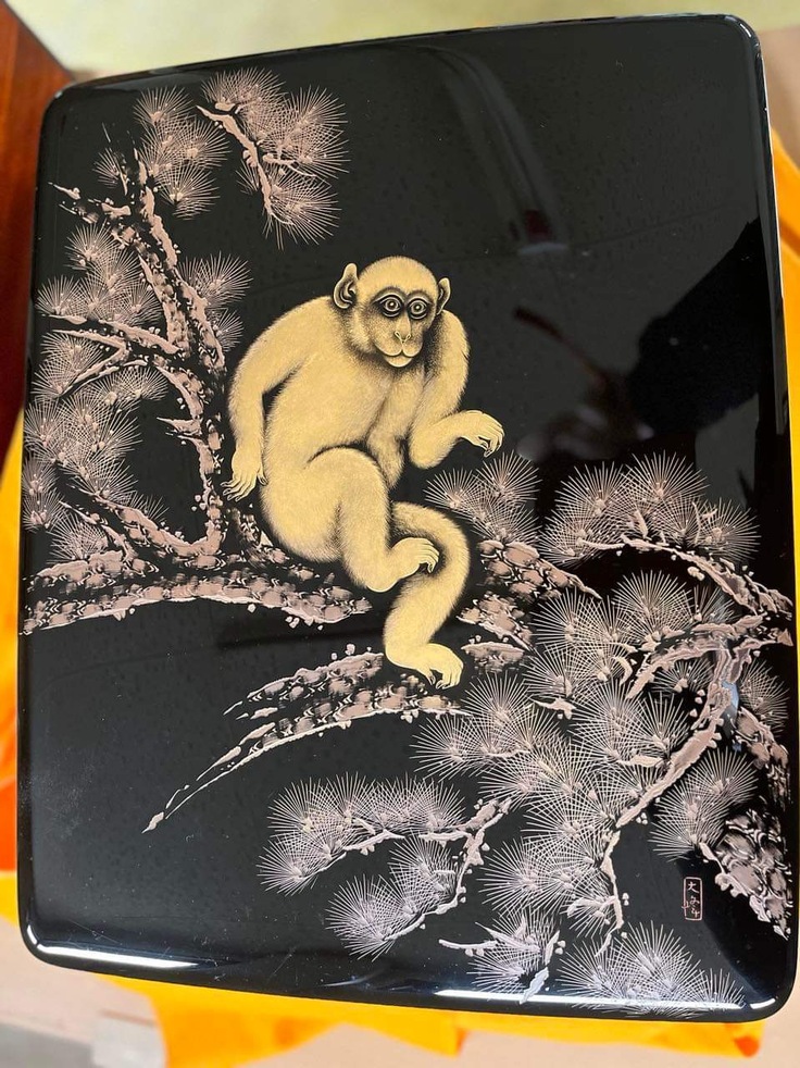 猿を描く『沈金技法』と申しますのはノミで漆の表面を彫り、