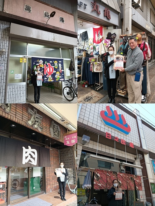 オーエス劇場のある町にある、お風呂屋さん×2、洋品店さん、焼肉屋さん。いつもお世話になっております。今回もチラシの設置にご協力いただきました。萬盛湯様、丸亀様、友園様、日之出湯様、ありがとうございます!