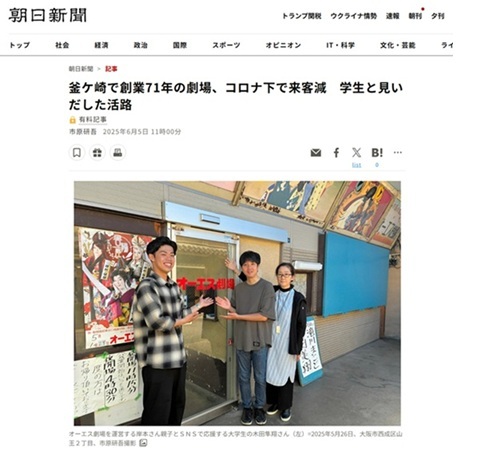 朝日新聞デジタルにて、オーエス劇場の取り組みが取り上げられました!