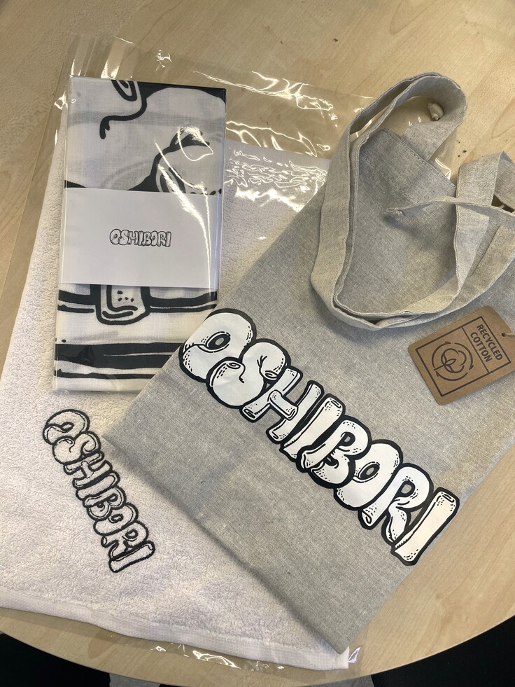 今回のアートおしぼりにも使用したタオルに「OSHIBORI」のロゴを施しました。おしぼりを身近に感じていただきたいという想いを込めています。