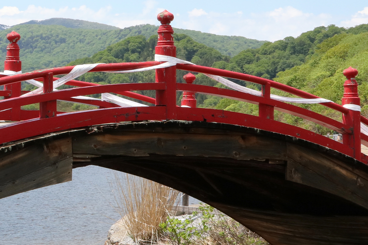 その霊場恐山を象徴する名所として知られ、この世とあの世への架け橋と言われる『太鼓橋』は、強烈な日差し・雨・雪・風を受け傷み、今までに何度も建て替えられて参りました。しかし老朽化の結果、2018年5月より渡ることができない状態となっています。