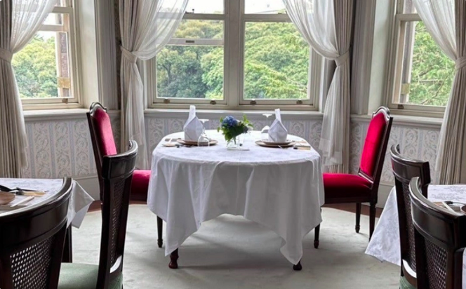 新しい返礼企画として、本棟主寝室でのアフタヌーンティーが登場します。大正から続く 歴史ある優雅な洋館の空間で、特別メニューを楽しみながら、建築の美しいディテールを 堪能できる貴重な体験を提供いたします。