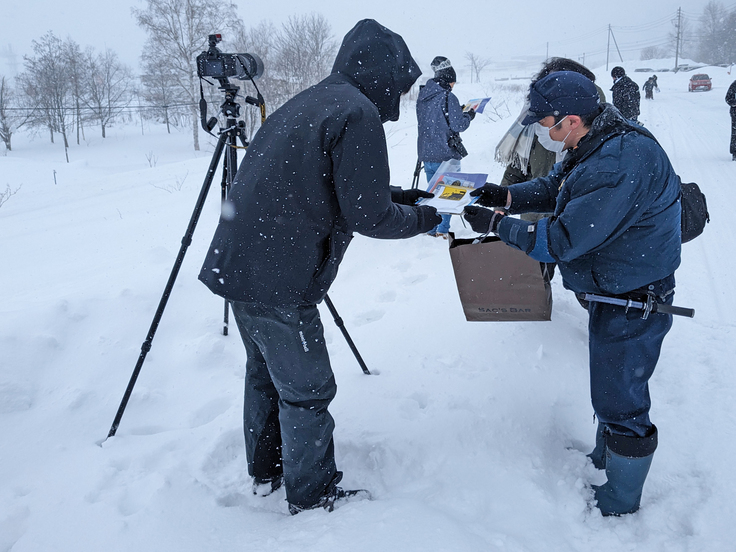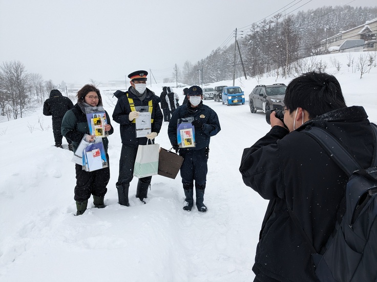 2017年から始めた啓発活動も8年目となり、今回は2024年1月13・14日に地元の駐在所長さん、音威子府駅長さんと一緒に、撮影マナー啓発の呼びかけやチラシ配布を行いました。