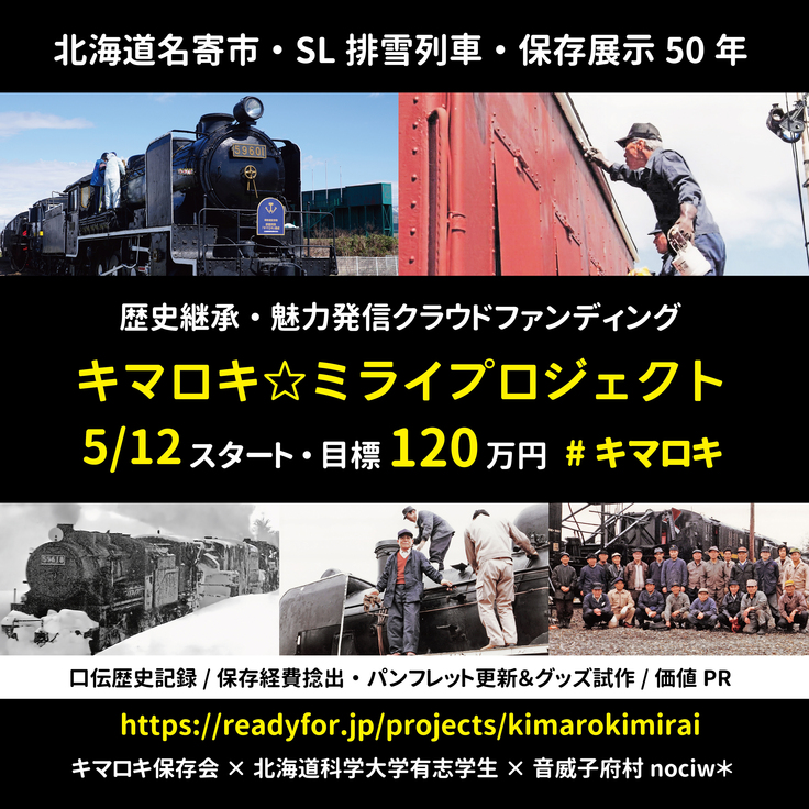 今回私たち有志団体は、キマロキにまつわる皆さんの想いや歴史、特に半世紀もの長きにわたり情熱をもって保存し続けてきたこと自体が【地域の宝】であると感じ、今回のクラウドファンディングの実施サポートをすることとしました。※ウェブ公開は5/12から