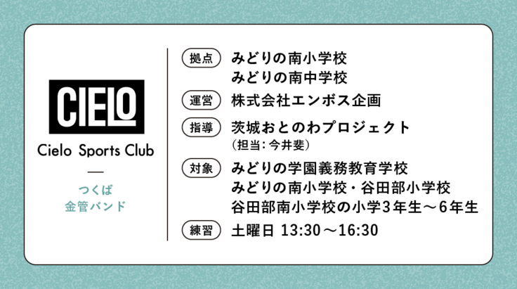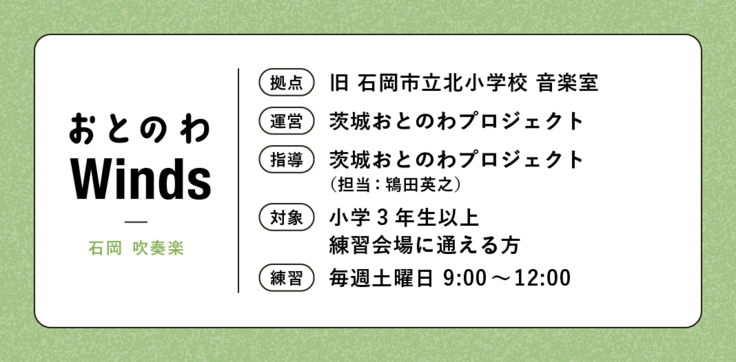 その実情を踏まえ、地域の場でも吹奏楽や金管バンドに親しむことができる “音楽教室としての吹奏楽団・金管バンド“ を作り、より充実した音楽体験活動を提供すべく、「おとのわWinds」「Cielo Brass」を発足する運びとなりました。