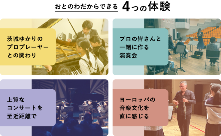 茨城おとのわプロジェクトは、本物の音に触れる体験こそが子供たちの成長につながると信じ、コンサートやワークショップなどさまざまな体験の機会を企画しています。