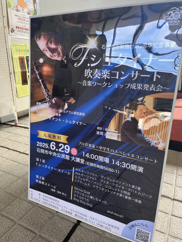 そして迎えた6月28日・29日には、オーストリアからザルツブルク・モーツァルテウム管弦楽団 主席クラリネット奏者のF.シュタイナー氏をお迎えして、吹奏楽ワークショップとコンサートを開催いたしました。