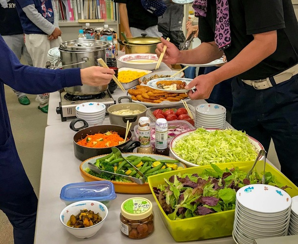キャンプの次の日に地元の素材もふんだんに使用した朝食バイキングも用意させて頂きました。