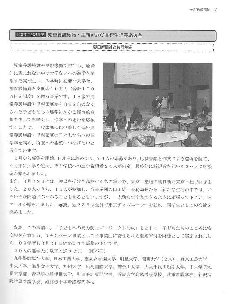 現在とは制度が異なるものの、進学応援金の開始当時の活動報告書を紹介します。