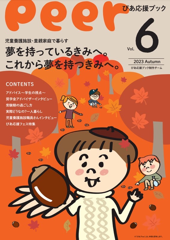 さて、本日は、児童養護施設・里親家庭等進学応援金を受けている応援生が、全国の後輩たちのために発行している「ぴあ応援ブック」の6号についてご紹介させていただきます。