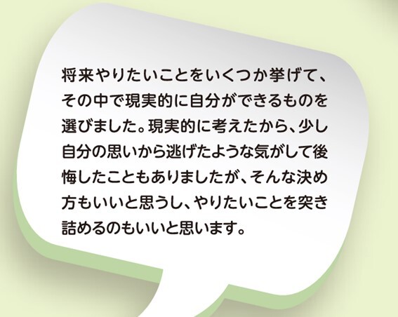 また、どのように進路を決めたかなどについても、体験をもとに記載しています。