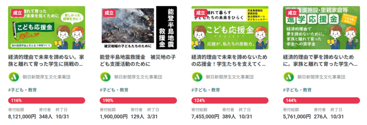 READYFORにおいて過去4回行ったクラウドファンディングでは、たくさんの方からご寄付をいただき、本当にありがとうございました。 今回の挑戦でも、皆さまからの多くの寄付を子どもたちに届けてまいります。