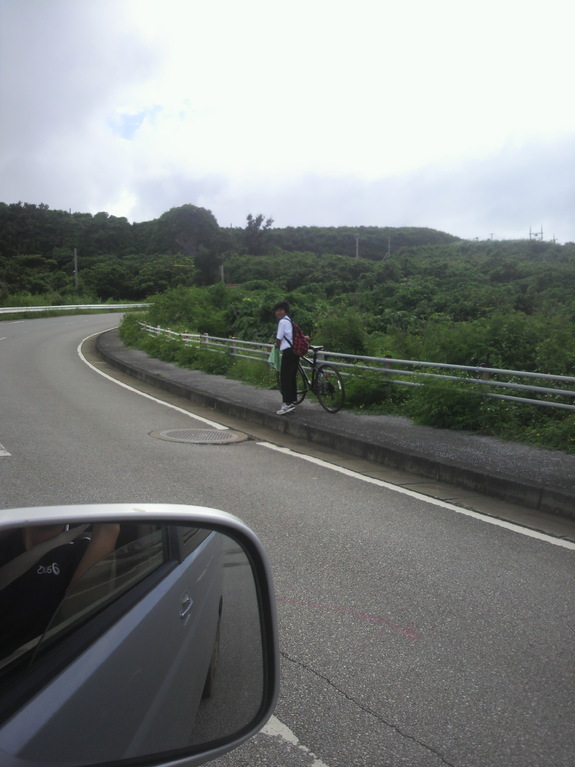 昨日の帰り道、来間大橋を制服姿で自転車で渡る中学生を発見。