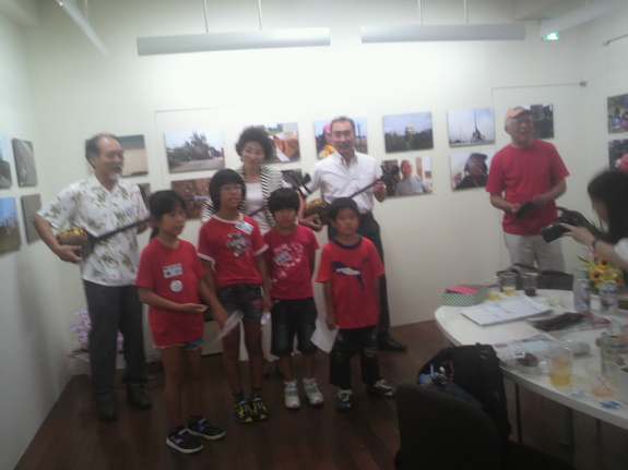 写真は、オープニングセレモニーで、島の民謡「豊年の唄」を歌っているところです。