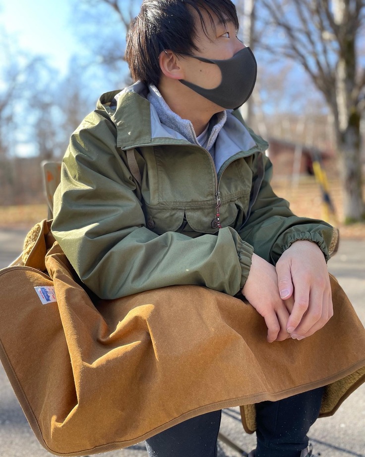 〇表地は赤外線を吸収して温かくなる新素材、裏地は難燃・防水テント生地。