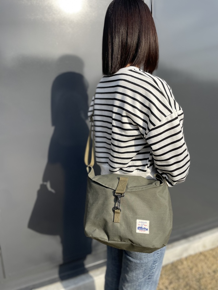 albertonならではのミリタリーテイストが入った、シンプルなほどよいサイズ感ながら、武骨な留め金具がかっこいい、かわいさとラフさが合わさったデザインのショルダーバッグです。